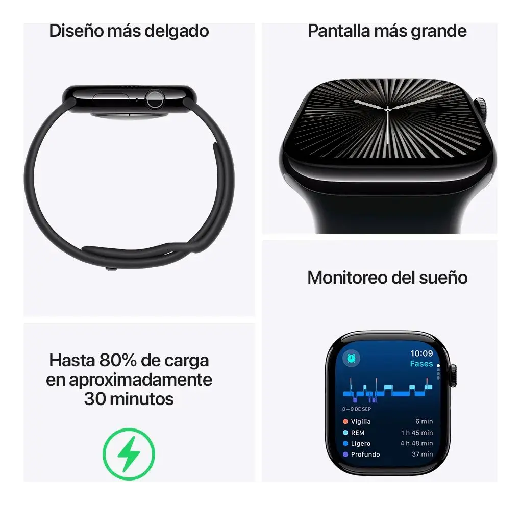 El Apple Watch Series 10 46 mm es uno de los smartwatches más avanzados de Apple, diseñado para acompañarte durante todo el día combinando tecnología, salud y estilo en un solo dispositivo. Su pantalla más grande y brillante, junto con sensores inteligentes y funciones de bienestar, lo convierten en una herramienta ideal para monitorear tu actividad, cuidar tu salud y mantenerte conectado sin necesidad de sacar el teléfono del bolsillo.